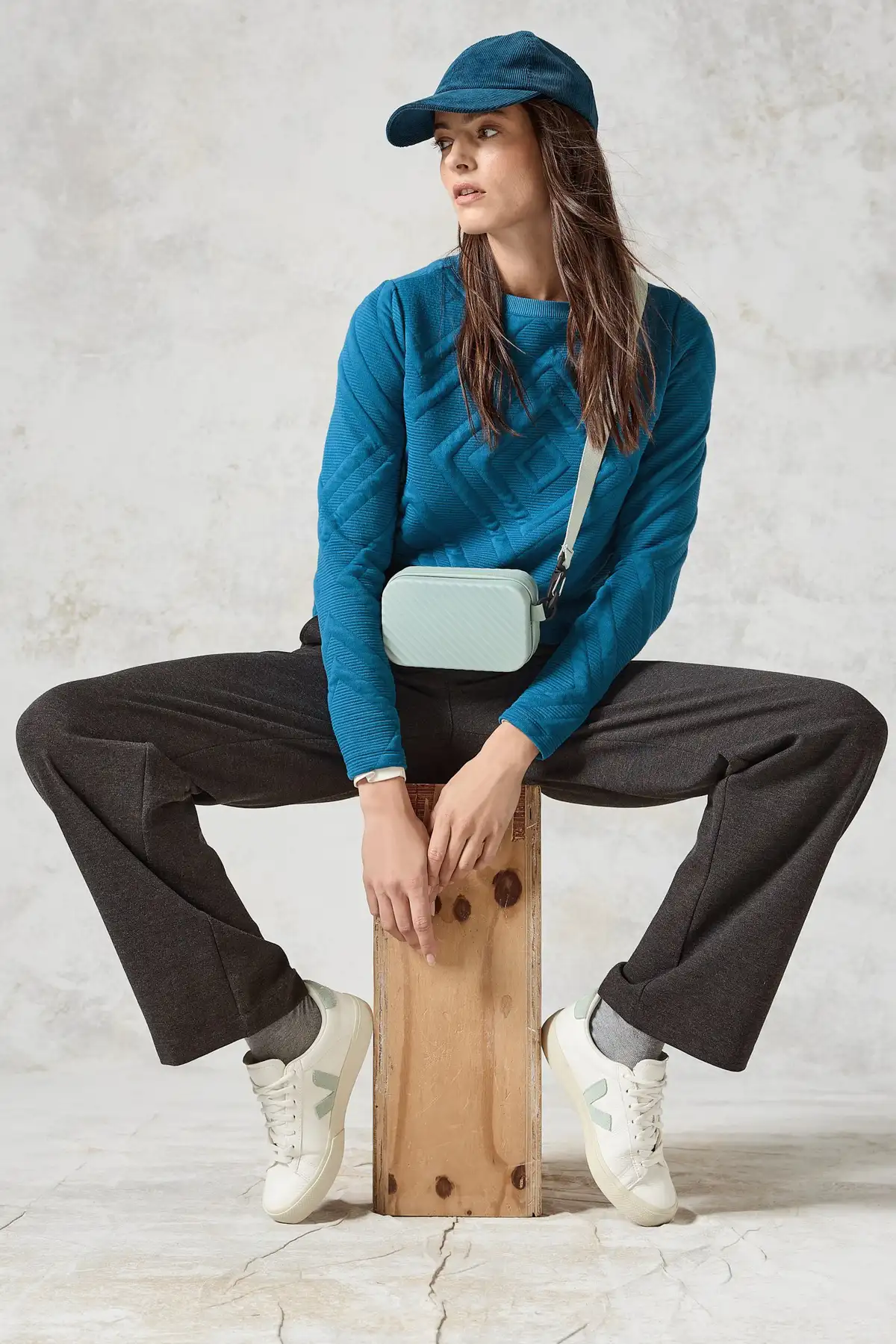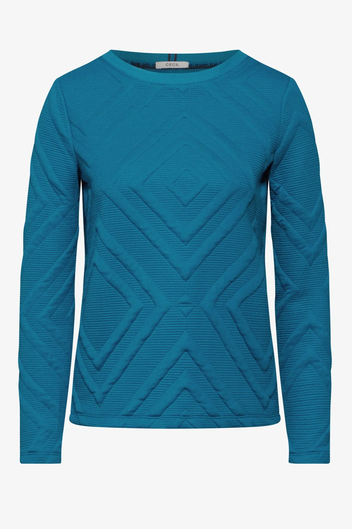 -Блуза с ефектна 3D релефна шарка в син цвят