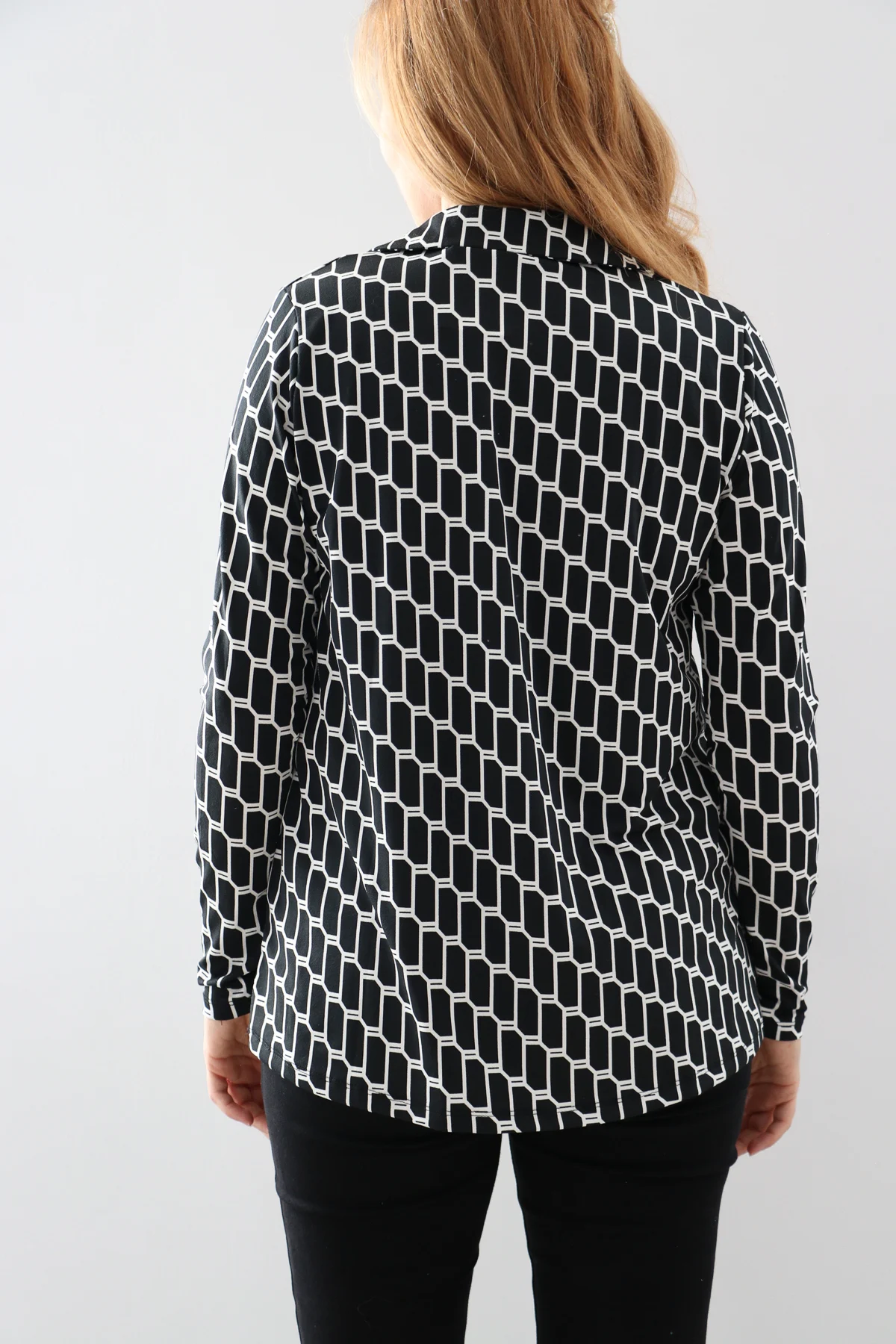 – Дамска блуза с ефектно принтирани фигури