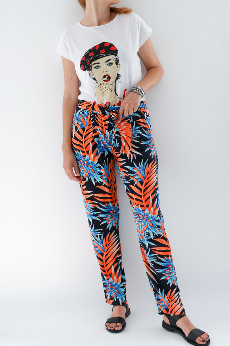 -Дамски панталон с нормална кройка и ластик на колана
