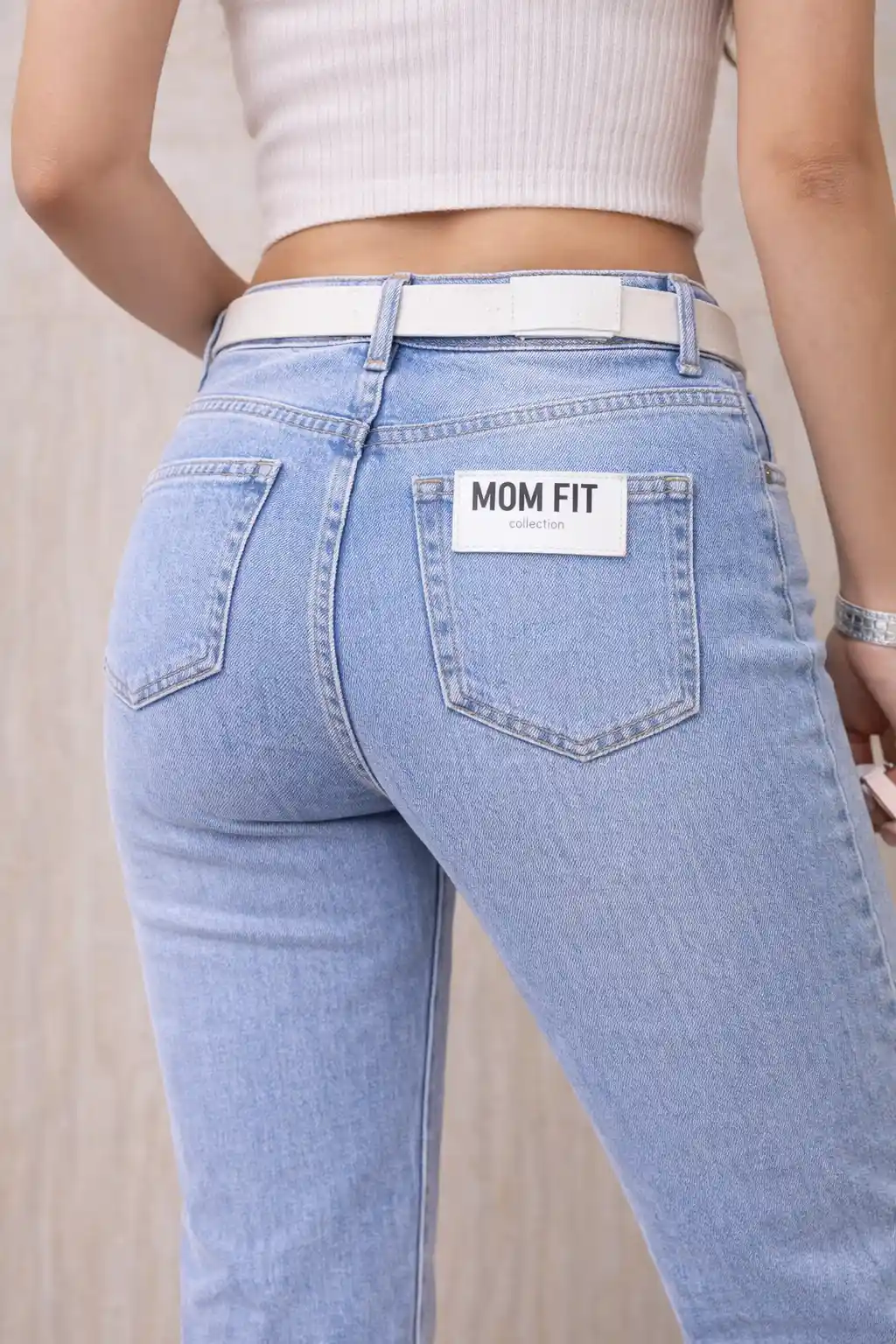 -Дънки в светло син цвят с кройка на крачола по крака