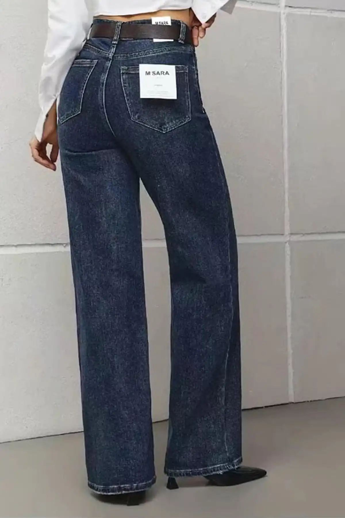 – Дънки в синьо с четири джоба, стандартна талия и прави крачоли