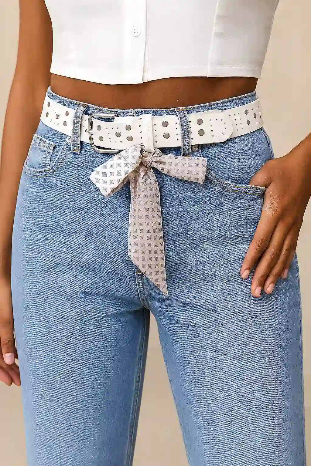– Изчистени дънки в светло синьо с четири джоба, стандартна талия тип балон