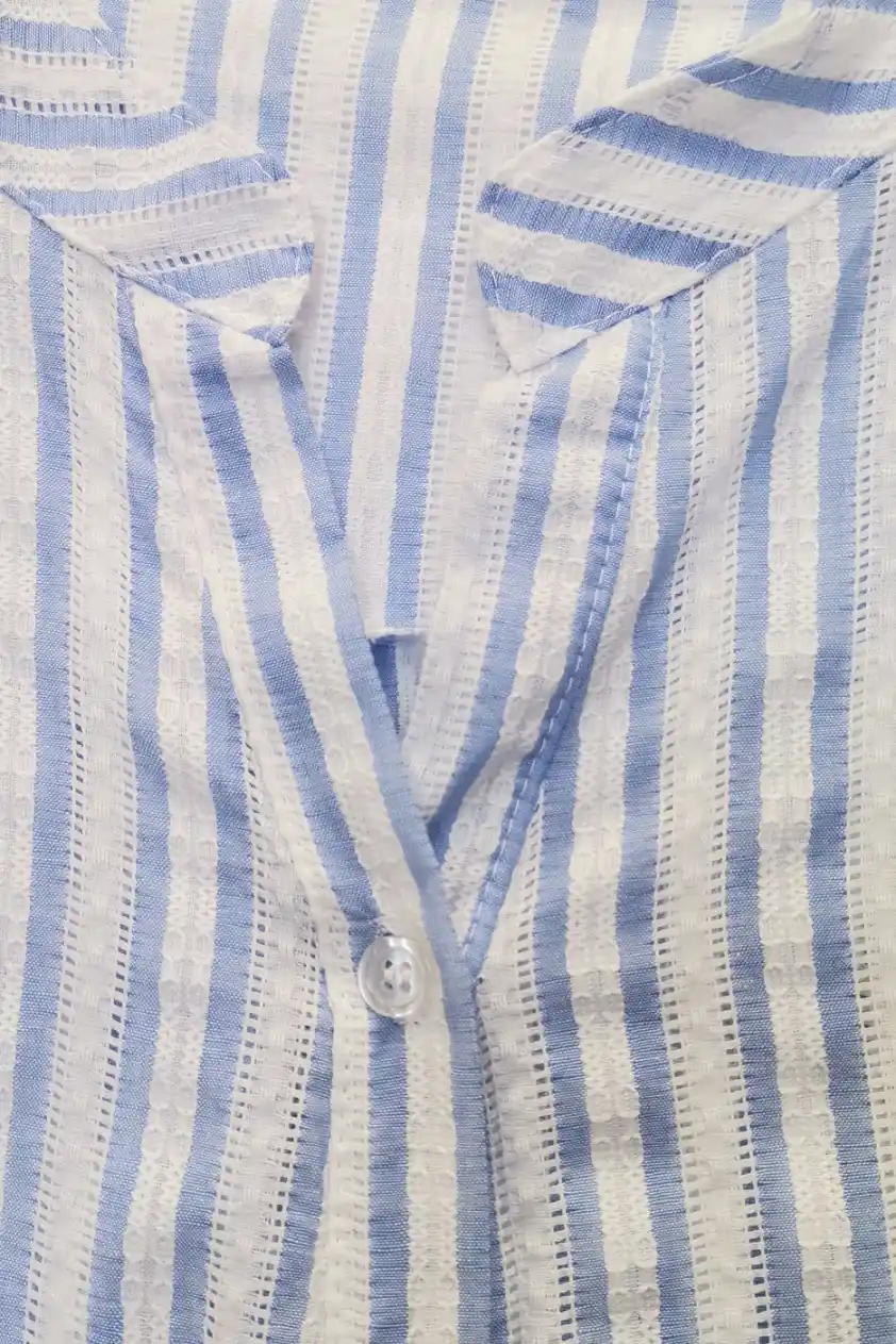 Стилна риза с нежен флорален десен, която придава свежест и елегантност на всяка визия. Моделът е с класическа яка и закопчаване с копчета отпред, което създава изчистен и елегантен силует.