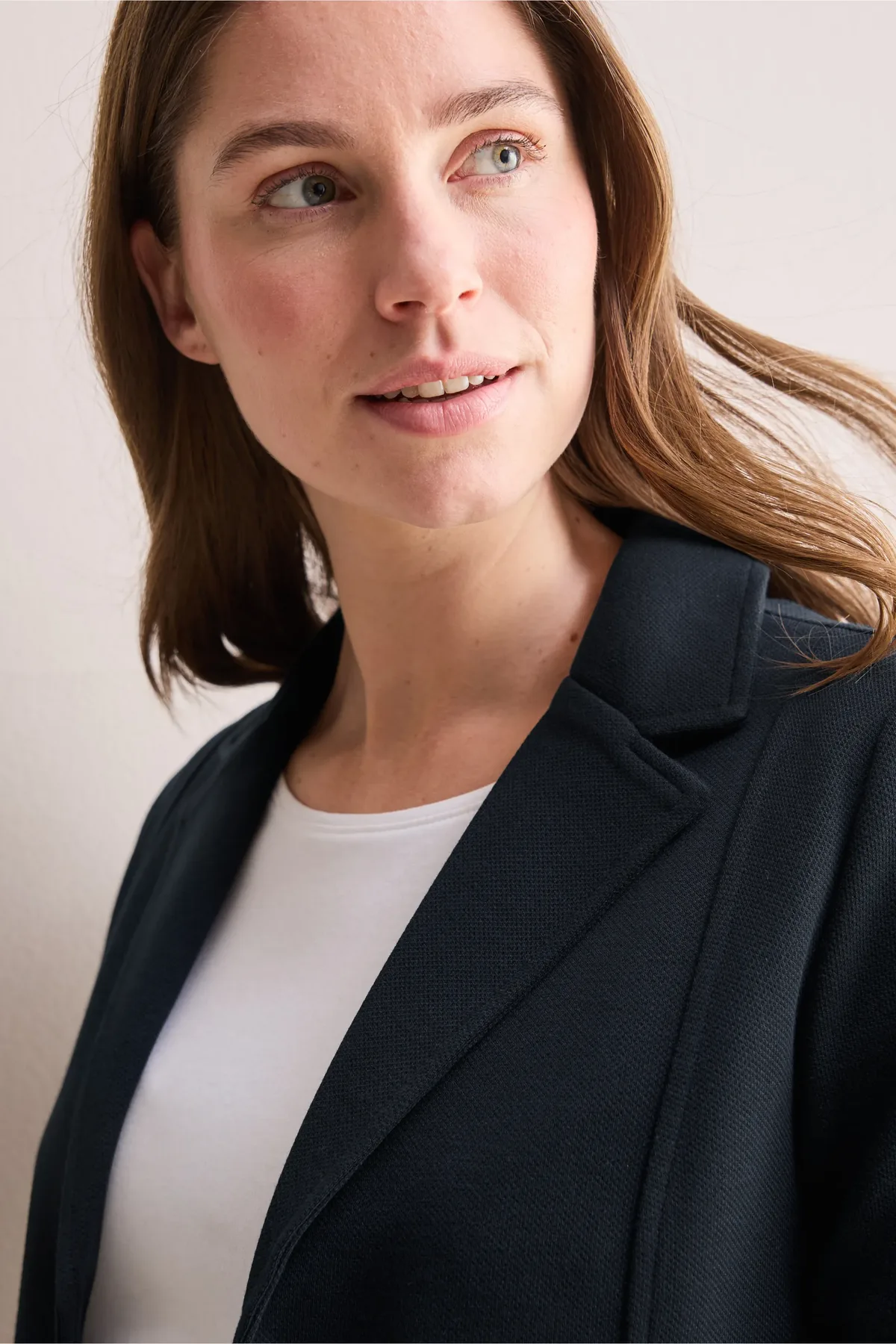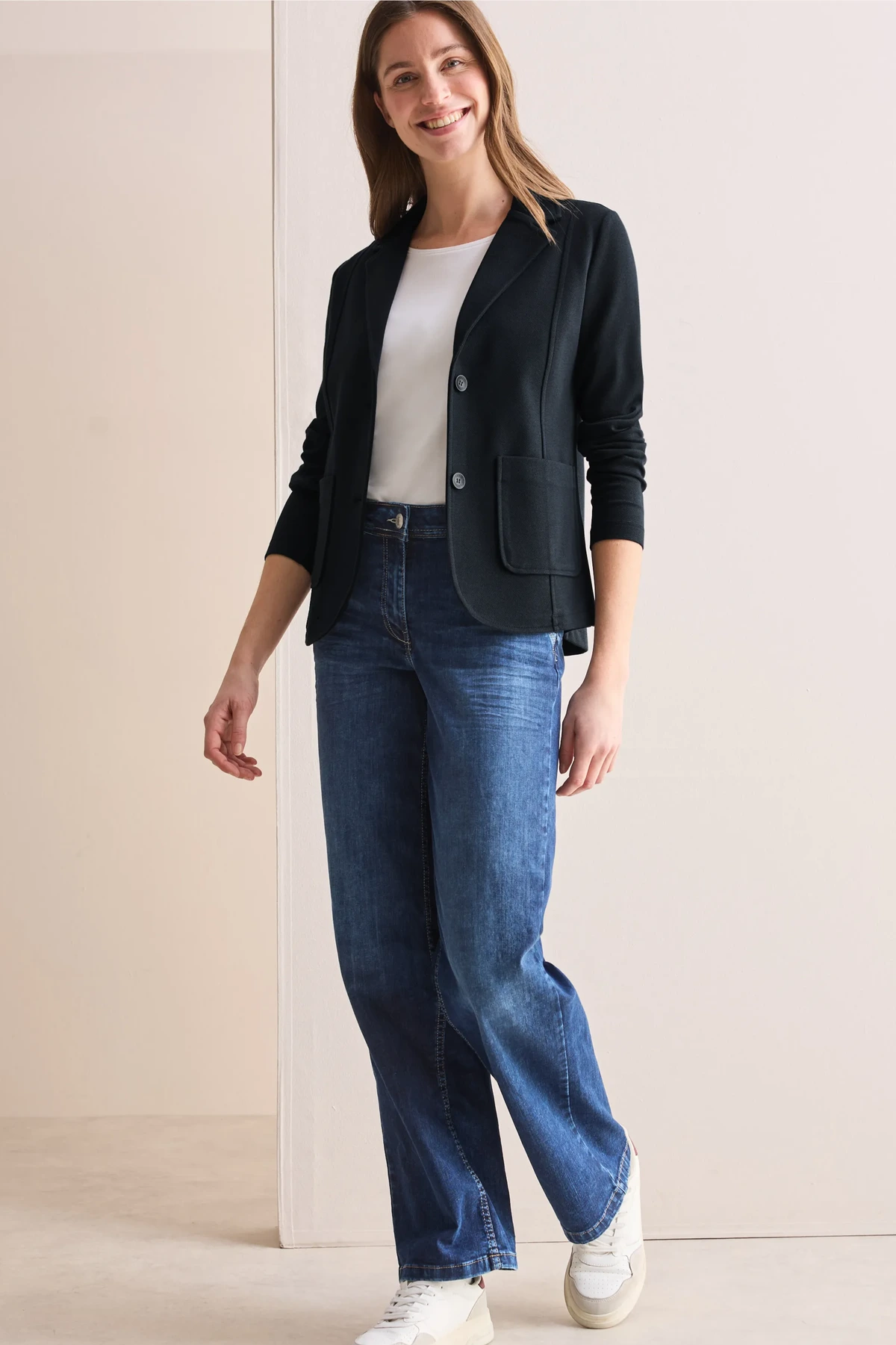 Това сако от CECIL се отличава с красива и удобна текстура, яка с ревер и джобове. Съчетанието от плат и еластичност го прави особено удобно, като същевременно осигурява перфектно прилягане.