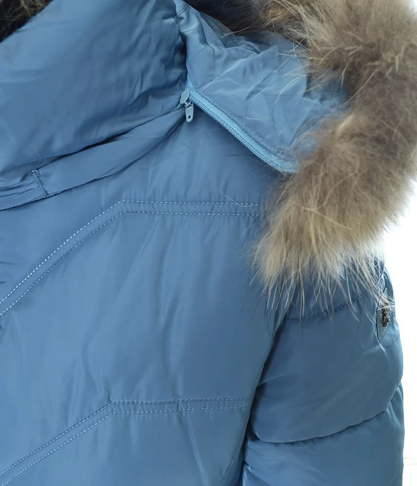 Изразете стил и комфорт през студените дни с това модерно зимно яке. Съчетавайки функционалност и елегантност, моделът впечатлява със своя светлосин цвят и изчистен силует, допълнен от обемна качулка с пухена гарнитура.