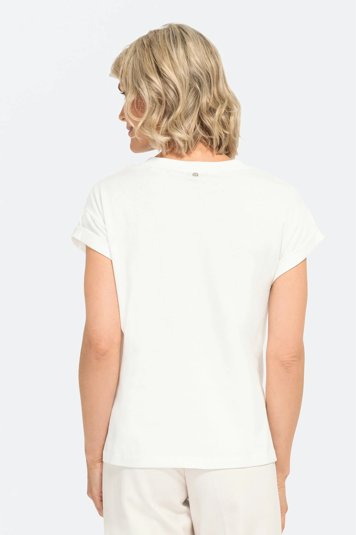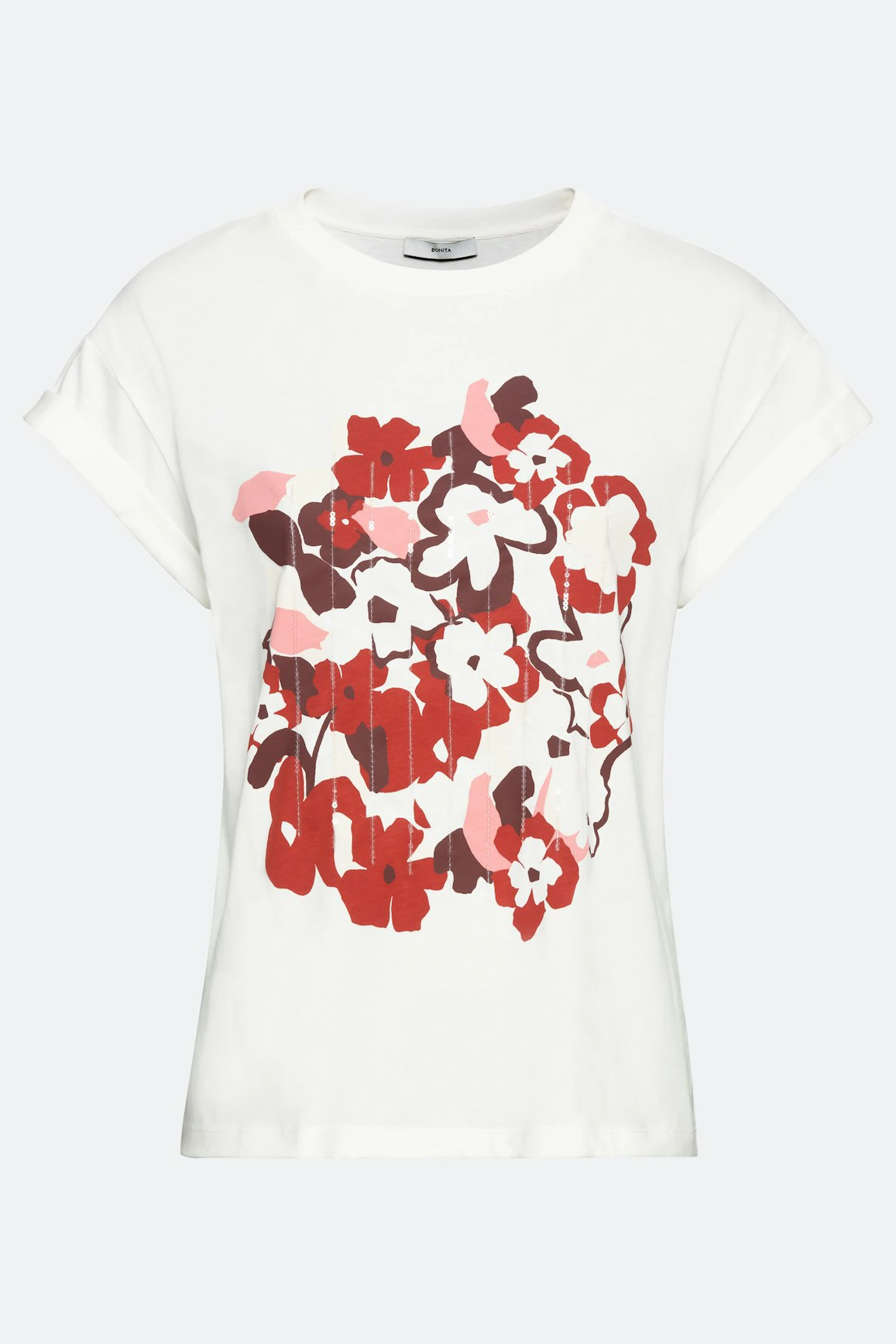 -Топ в бяло на шарени цветя и пайети