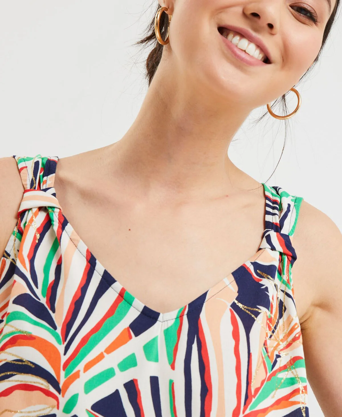 Моделът е с височина 169см, гръдна обиколка 92 см и носи продукт с размер S.